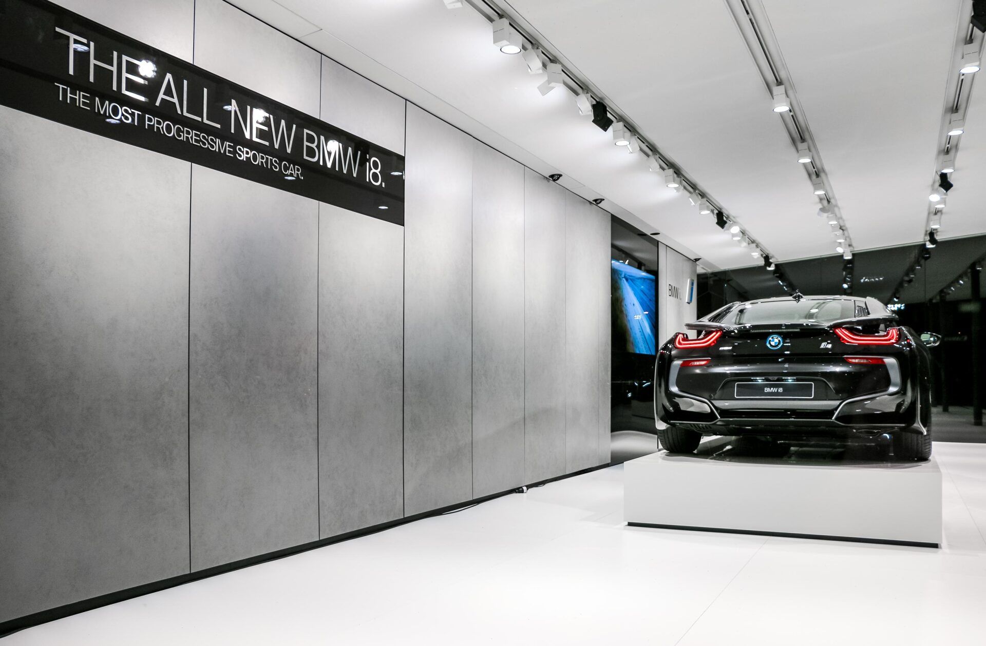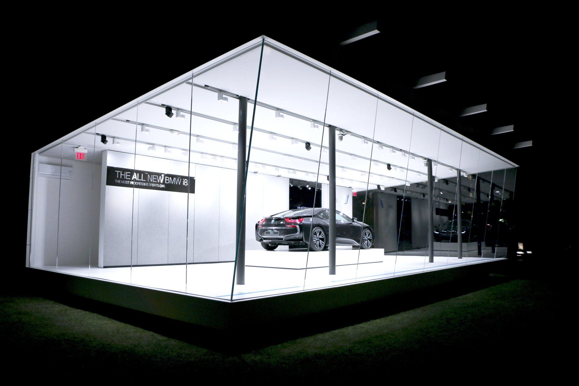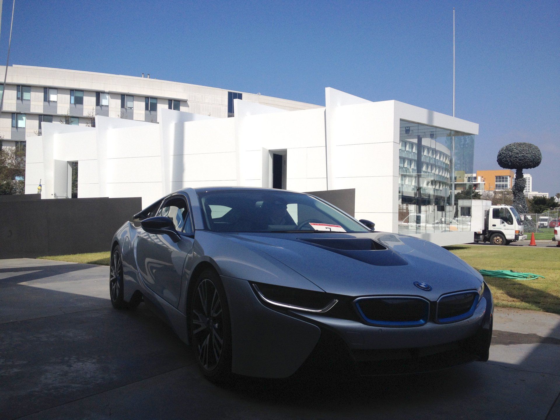 VIP guests were invited to the introductory keynote which highlighted some of the key features and capabilities of the new hybrid sports car before guests were given the chance to explore the car first-hand. At the Civic Auditorium, a large array of i8 cars were on display where guests were then invited to experience the i8 first-hand by means of a ride-and-drive through the streets of sunny Santa Monica, California. The i8 was on display on the front lawn of the Civic Auditorium in its very own custom outdoor pavilion for the public to enjoy while the event was underway.