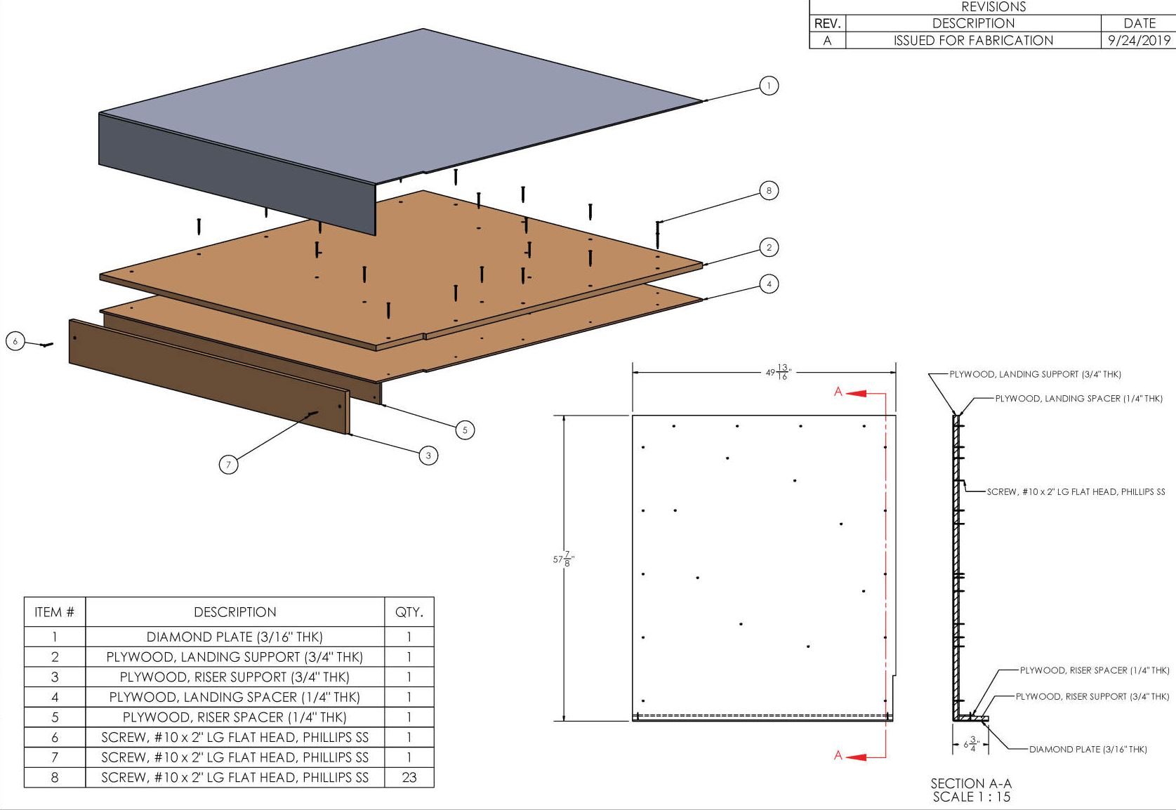 Once the design was approved, the team engaged a fabrication engineer in conjunction with the base building engineer to solve a structure that could support a stable floating landing. After receiving approval of the engineered solution, SDI and the Client, ASTOUND proceeded to fabricate the staircase. The staircase was modeled in