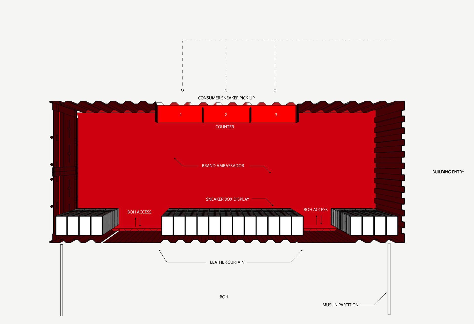 Guests were encouraged to pick up shoes from one of the pick-up windows at the container before proceeding to the private Kendrick Lamar concert. The font and colours of the shoe were translated on to the shipping container which also featured a step that displayed the phrase DON’T TRIP to tie in the name of the shoe model. Kendrick Lamar was so thrilled