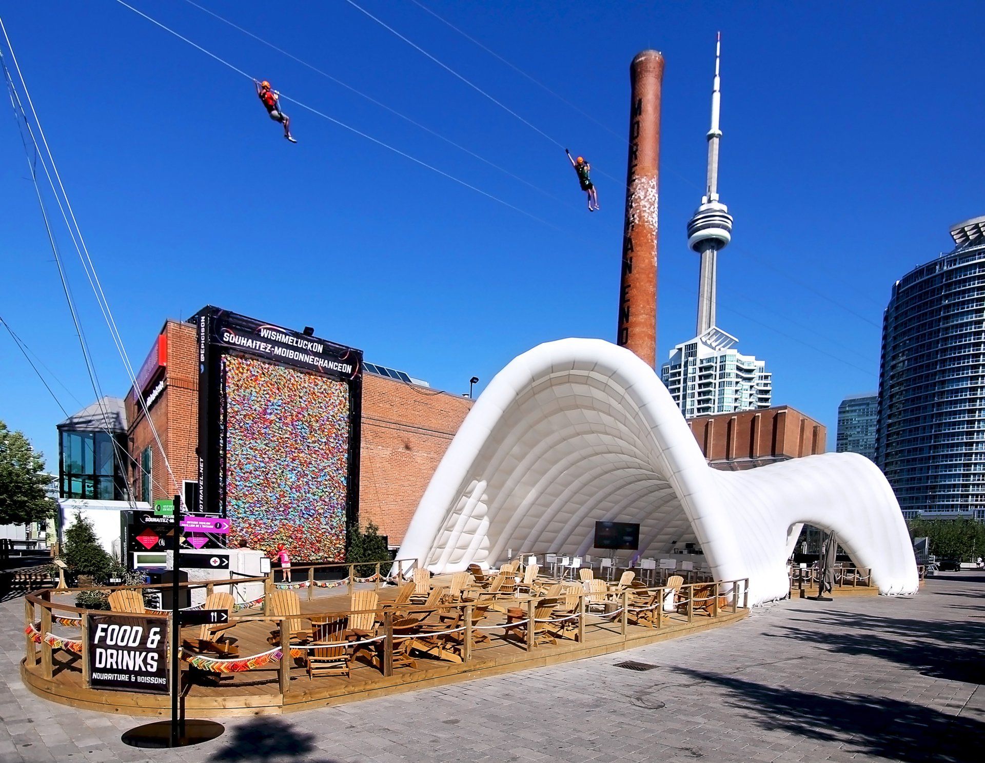 Ontario’s Celebration Zone is where locals and visitors from around the world had the opportunity to take part in over 500 free events and activities including nightly concerts, theatre and dance productions, celebrity chef demonstrations, a weekly farmers' market, Latino-Hispanic and Caribbean events, performances featuring artists with disabilities, First Nations and Francophone showcases and water-based sport demonstrations. Visitors also enjoyed interactive activities such as the accessible 400-foot zip line, 40-foot adrenaline jump and a 30-foot rock climbing wall.