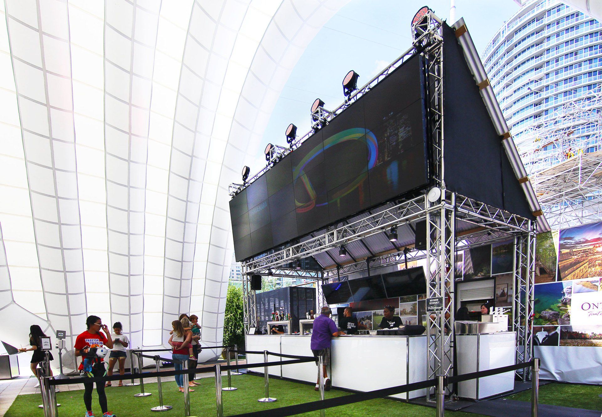 Ontario’s Celebration Zone was a free must-visit destination during the Pan Am & Parapan Am Games where families could enjoy live entertainment, outdoor concerts, art installations, digital media demos, craft beer and culinary tastings, and an amazing zipline, rock climbing wall and Adrenaline Jump. The two custom structures housed a full concert stage with live-to-air broadcasting capabilities plus food and beverage services throughout the 38-day program located at Toronto’s beautiful Harbourfront Centre.