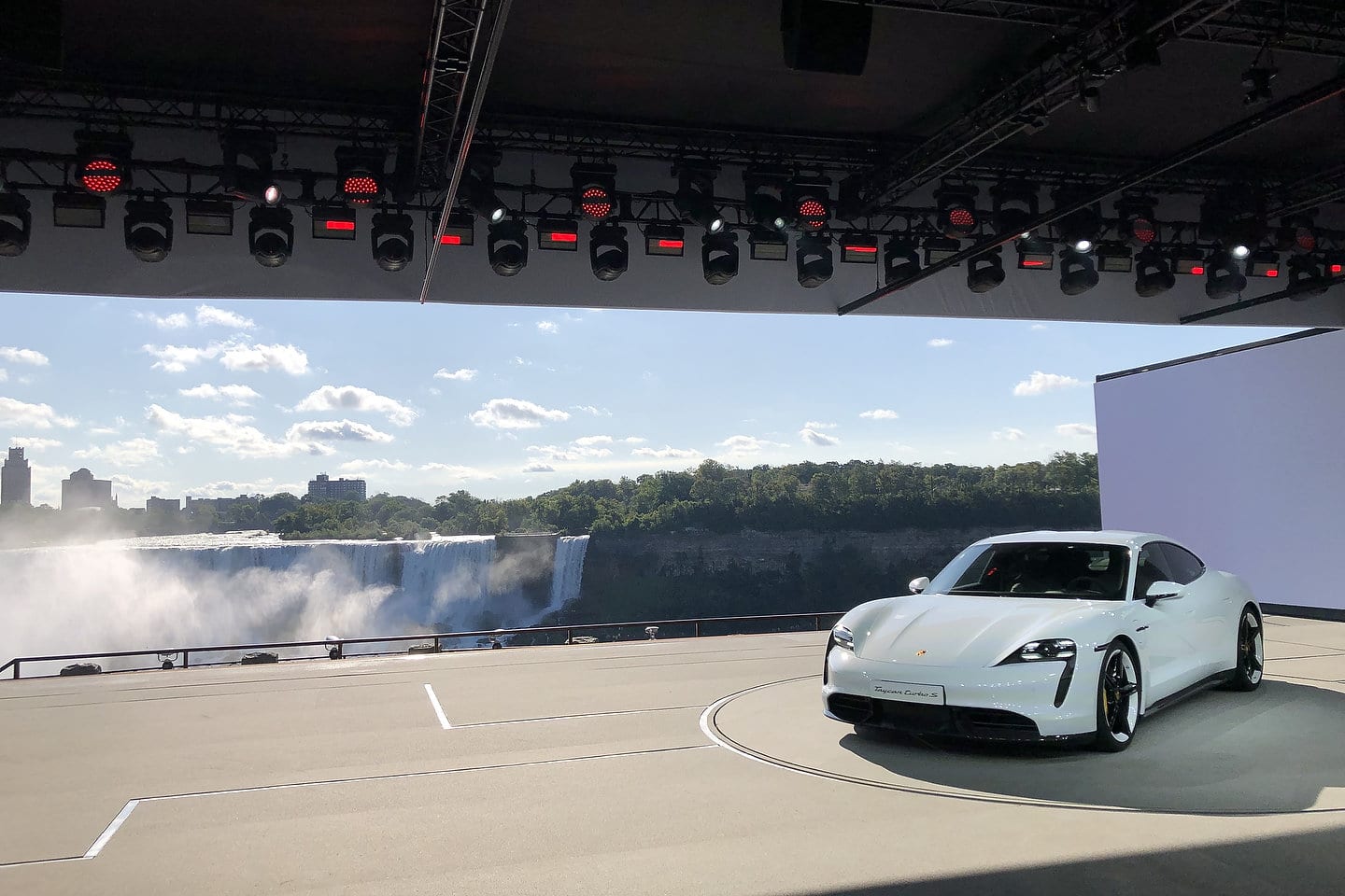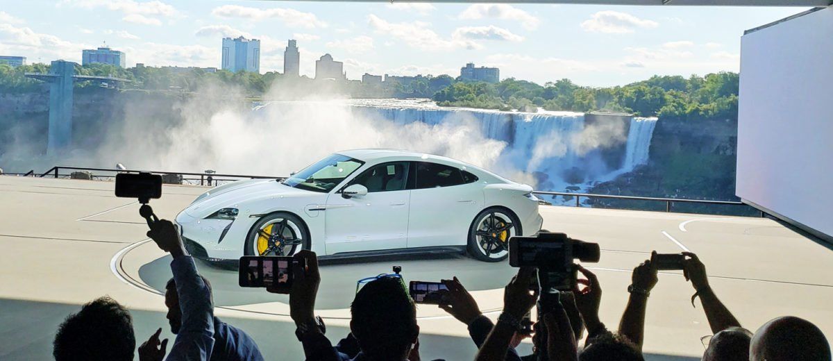 Porsche presented its first fully-electric sports car to the public with a world premiere event held simultaneously on three continents – North America, China, and Europe. The event locations are also a synonym for three ways of sustainable energy management: Niagara Falls at the border between the US state of New York and the Canadian province of Ontario representing hydropower. This one-time triple event was broadcast worldwide via live stream on NewsTV.porsche.com.