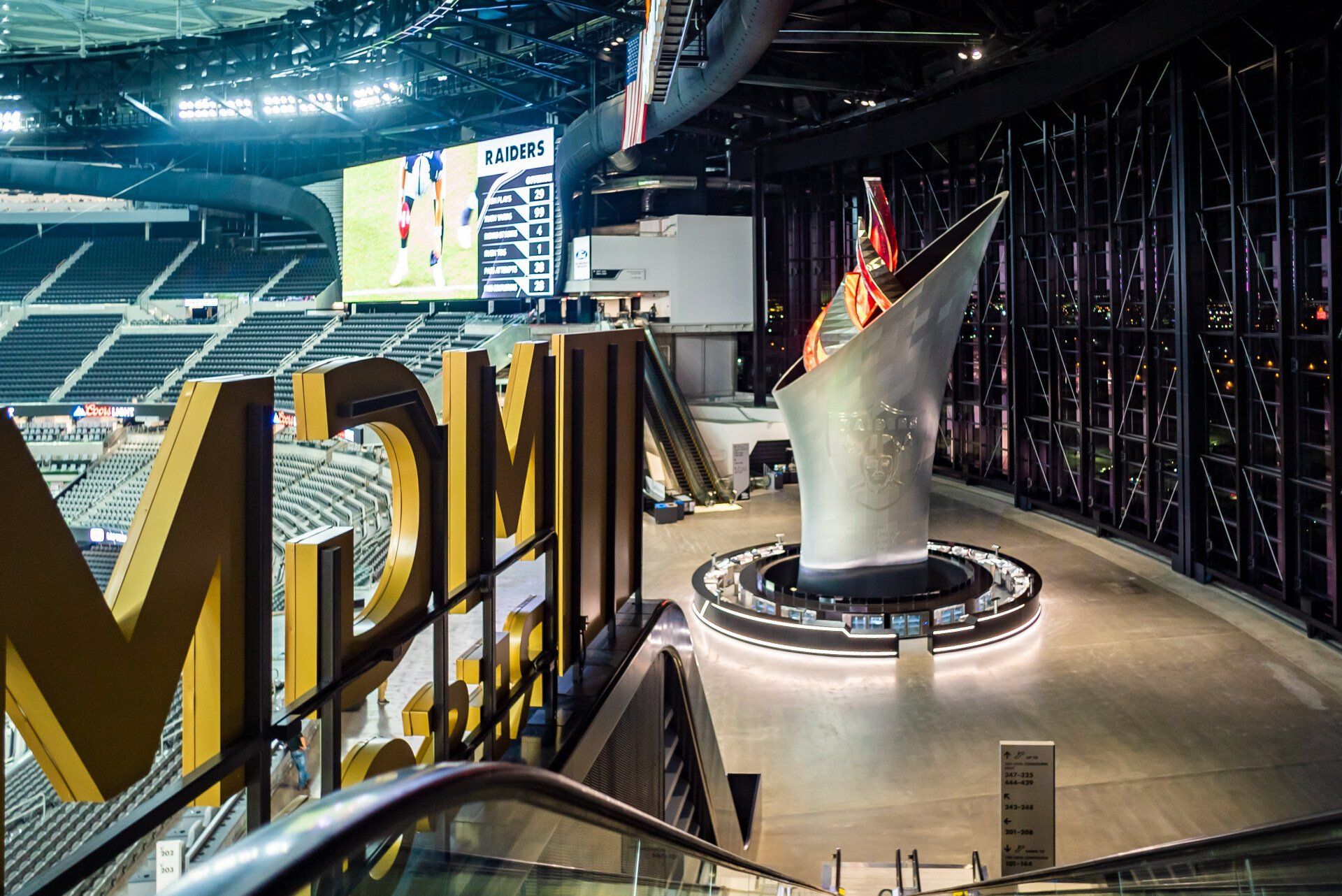 Through close collaboration with the client, ASTOUND developed an eye-catching design for the massive torch flame featured in the main mezzanine of the Las Vegas Raiders Allegiant Stadium. Throughout the ideation and creative process, the concepts and curves of the flame were constantly reviewed by our in-house project designers and engineers to ensure the structural integrity and feasibility of the complex compound curve forms.