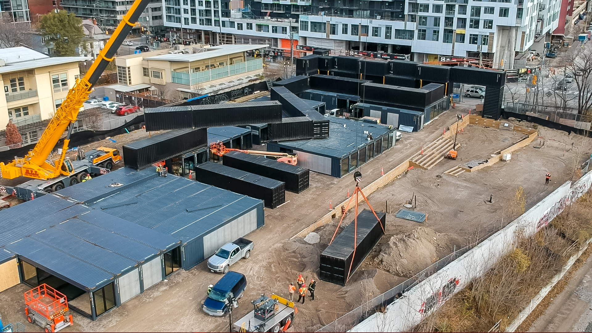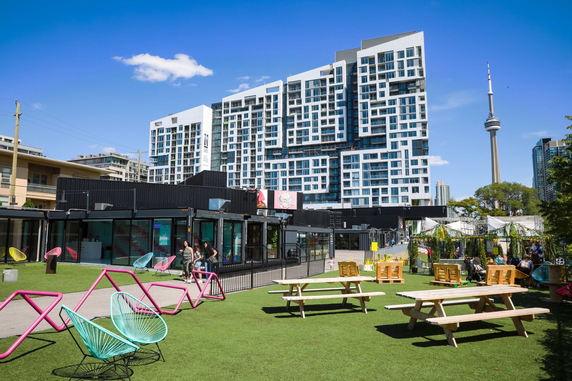 The two-block, 2.4 acre site was designed to provide Torontonians and their visitors with a lively cultural destination and community hub with anchor and pop-up shops, food and beverage vendors and an onsite brewery, woven with courtyards, pedestrian paths, and open spaces for community programming and events. Surrounded by new developments and condo construction, a daycare center, railway tracks, Fort York historic site and the Bentway’s new public outdoor space, stackt embraces the area’s unique and changing characteristics while augmenting them with an additional amenity.